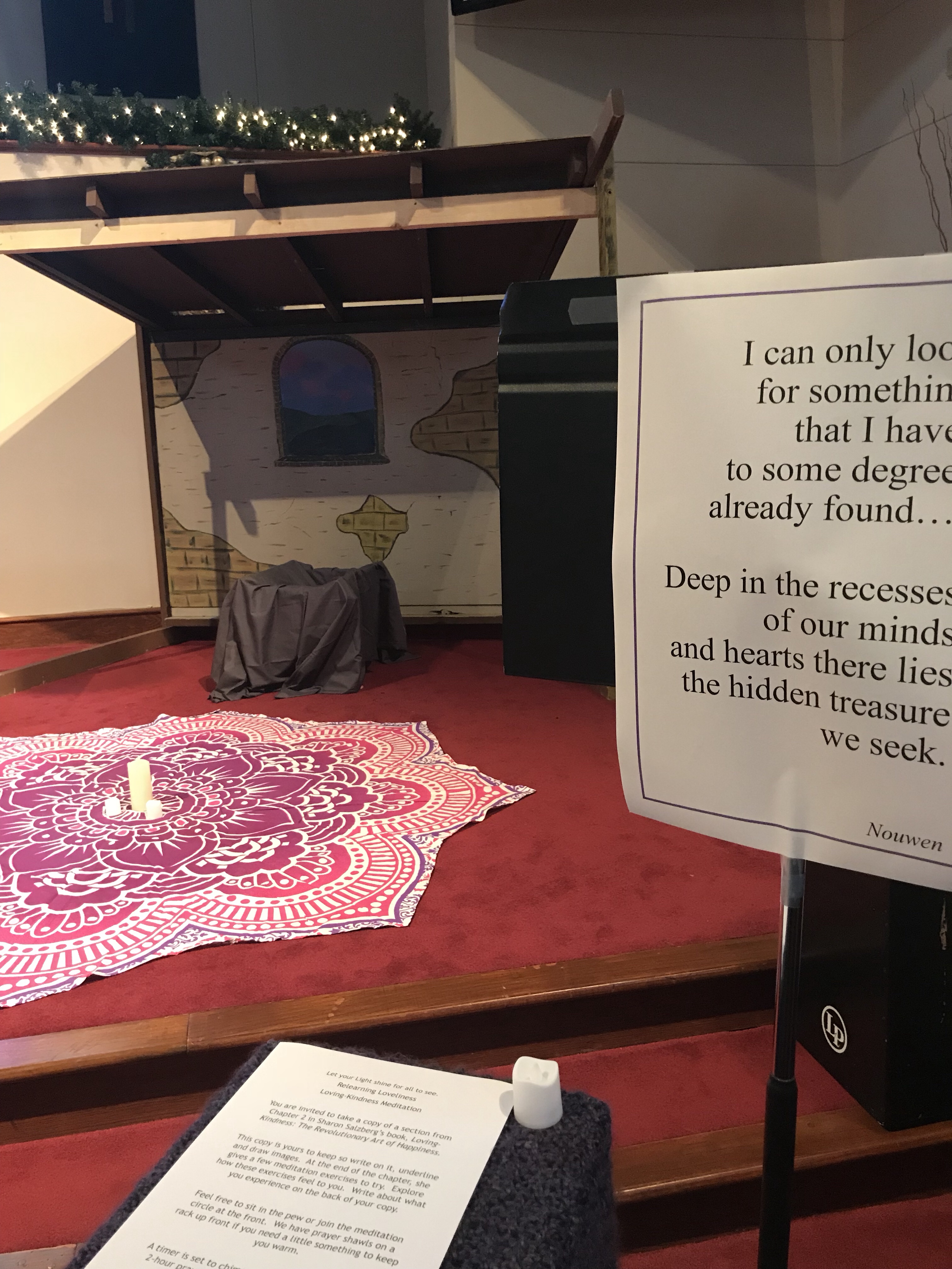 I began just listening to the sound of my breath.  Rhythmic.  Life giving.  Then, I did a body scan relaxing the areas of my body that held tension.  I began at the crown of my head and worked my way to my toes….slowly.  After I felt settled, I started repeating the phrase, “I am the light of the world.”  You can use any phrase or any word that speaks to you, but the phrase or word needs to resonate within you.  This phrase or word is about who you are deep within.  You may not believe the words all the time, but you know them to be true.  Here are a few options:  I am the Beloved, Joy, I am love, Peace.